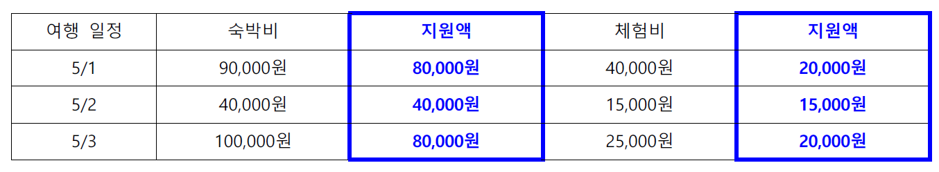 예시) 2인 기준 [숙박비 최대 8만원, 체험비 2만원]