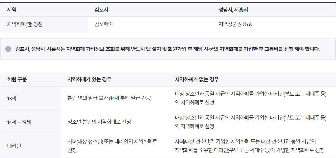 ▶ 김포시, 성남시, 시흥시에 거주하는 청소년은 회원가입 전에 지역화폐 앱을 통해서 해당지역의 지역화폐를 발급 받아야 함