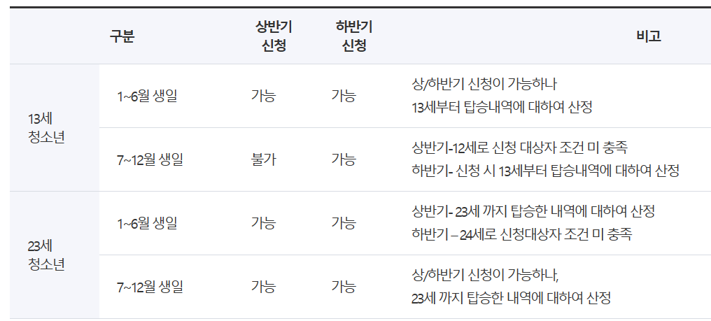 - 지원금을 신청하려는 청소년의 교통카드 번호 필요