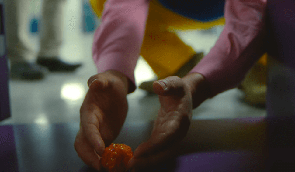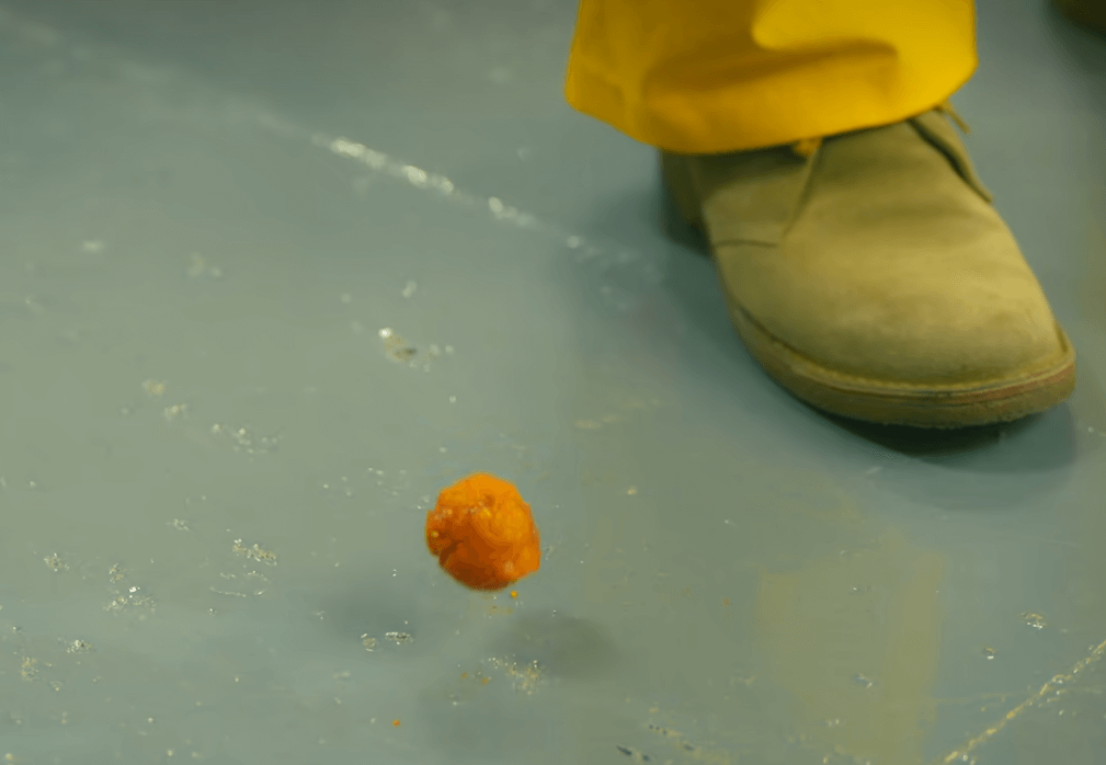그때 백중의 닭강정이 바닥에 떨어지고 민아는 떨어지는 닭강정을 보고 '닭강정'이라고 말을 한다.