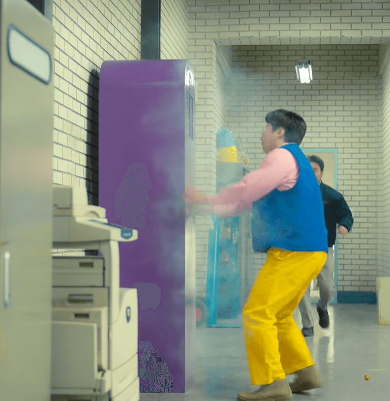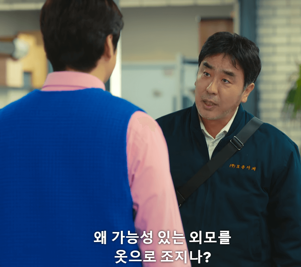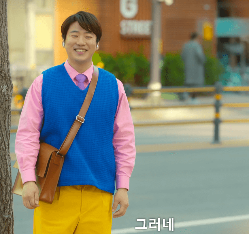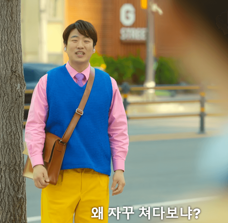 그런데 대박... 드라마 내용이 정말 첫화부터 병맛이었다. 노란 바지에 분홍셔츠, 파란색조끼를 입고 딱 봐도 병맛의 기운이 느껴지는 등장신.