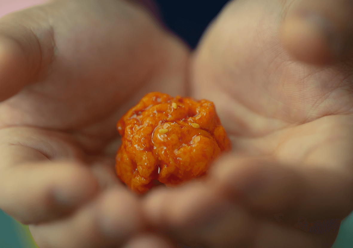 민아가 사라진 자리에 덩그러니 놓인 닭강정 한 알.