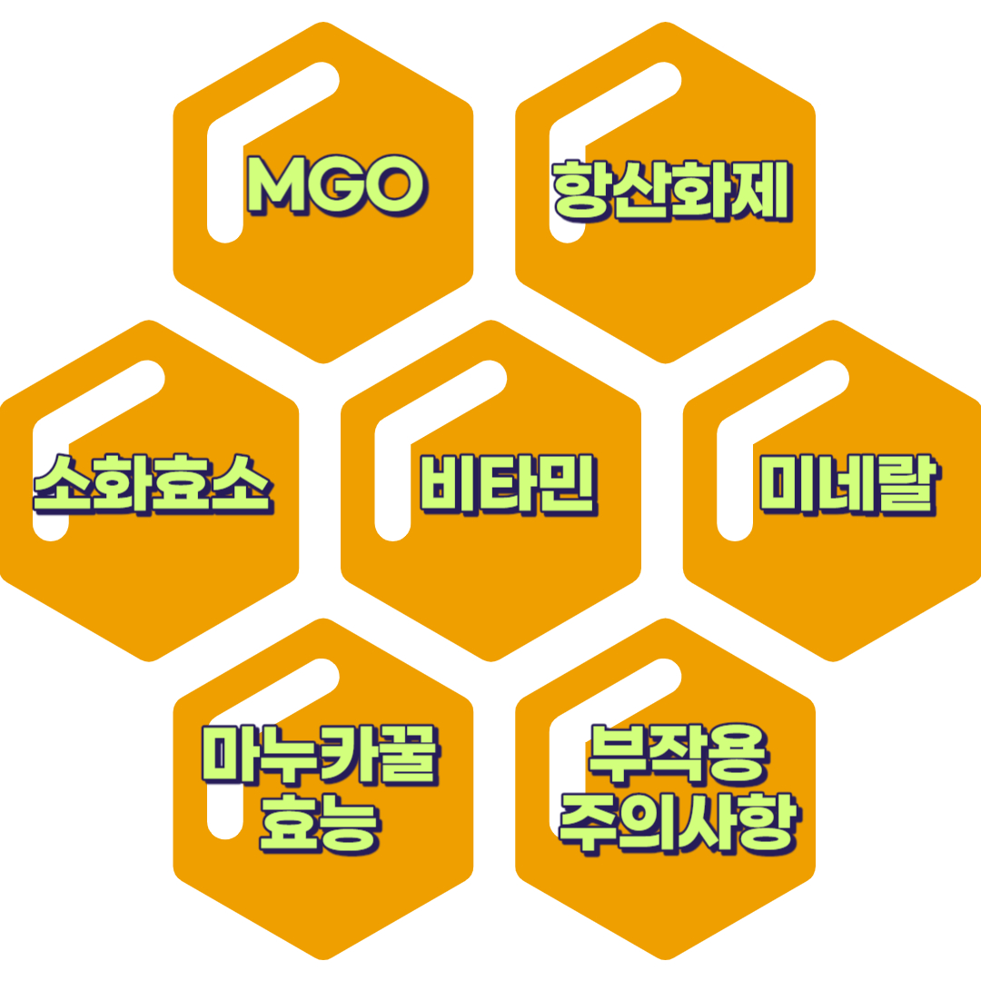 ▶ 마누카 꿀을 사용할 때는 메틸글리옥살(MGO) 및 기타 유익한 화합물의 수준을 나타내는 고유 마누카 인자(UMF) 등급이 검증된 고품질 제품을 선택하는 것이 중요합니다. 직사광선을 피해 서늘하고 건조한 곳에 보관하세요.