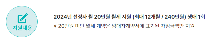 ▶ 월 20만원 임차료 지원(최대 12개월, 생애 1회)