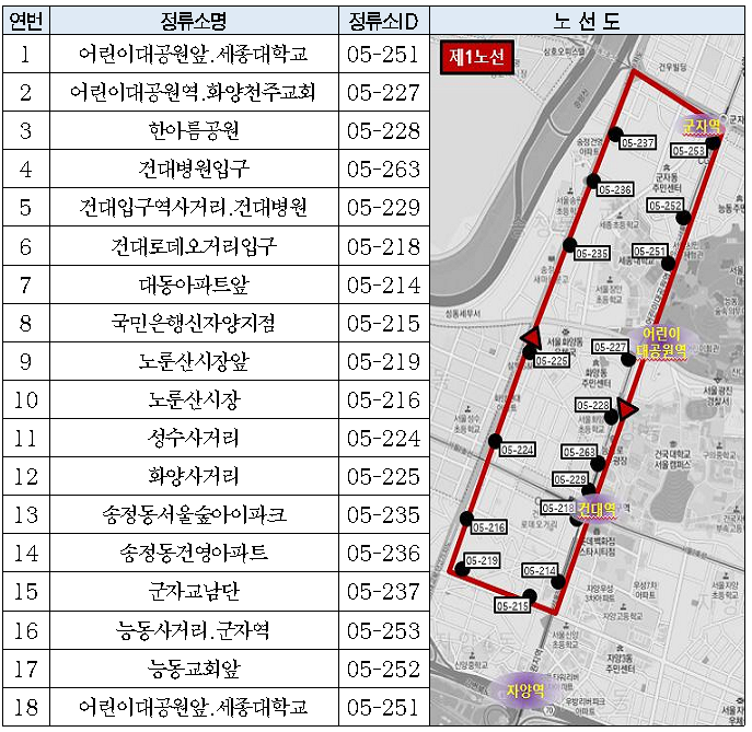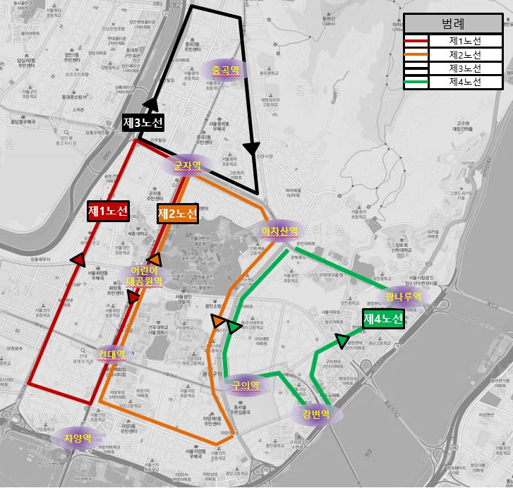 광진구 무료셔틀버스 노선도