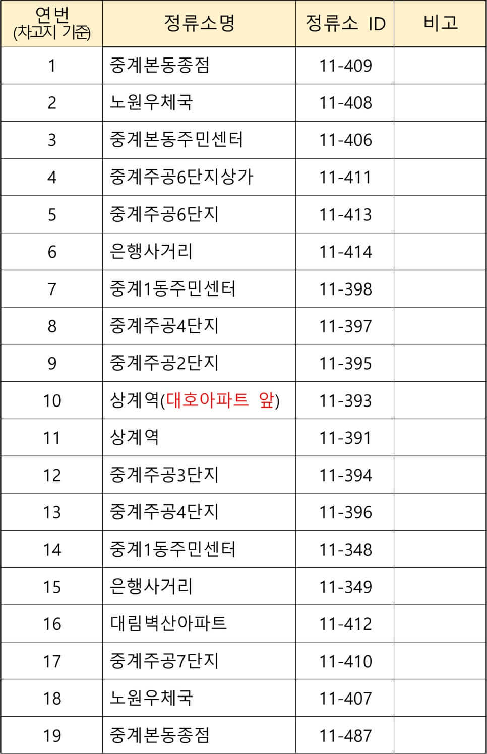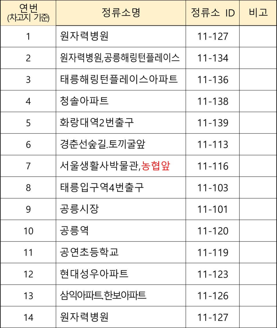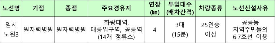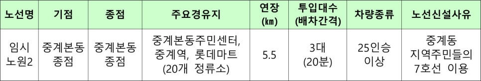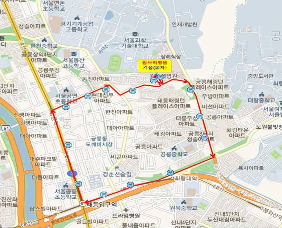 노원구 무료셔틀버스 노선도