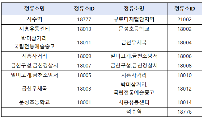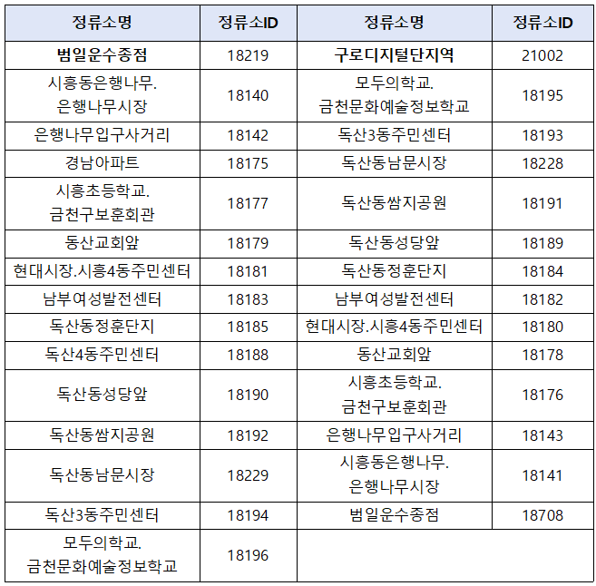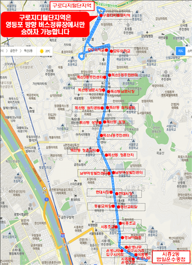 (시흥2동~독산로~구로디지털단지역)