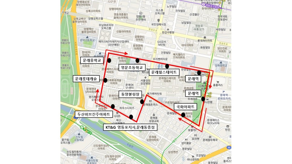 문래역–국화아파트–문래대림아파트–문래두산위브아파트–문래롯데캐슬–영문초등학교-문래역