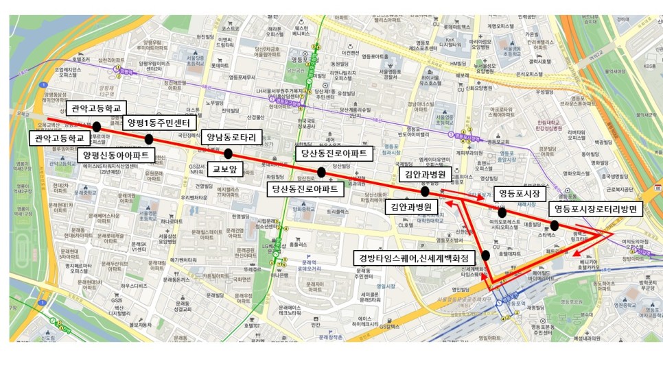 관악고등학교-양남사거리-영등포시장교차로-영등포역-관악고등학교