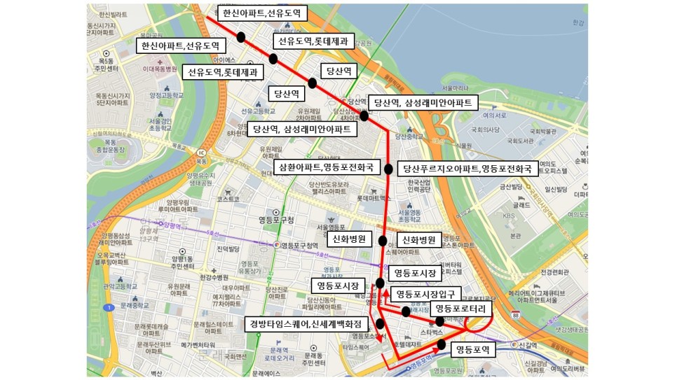 선유도역–당산역–삼환아파트–영등포역–영등포로터리