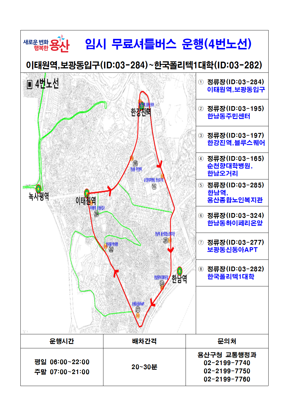 그 밖의 지역 무료셔틀버스 노선도 찾기