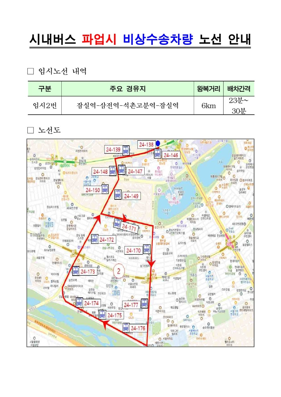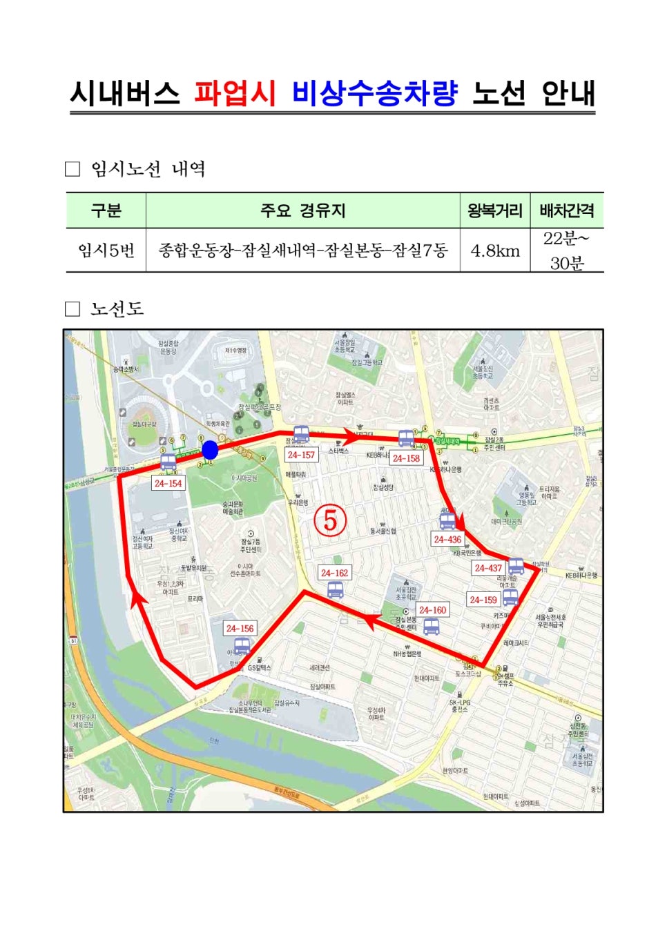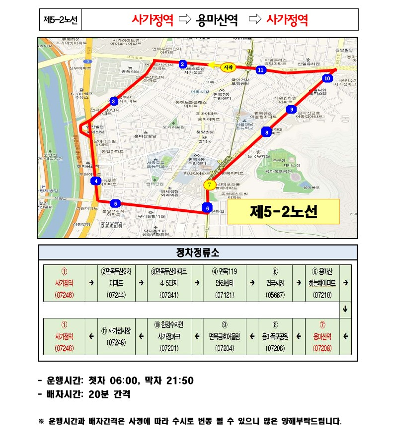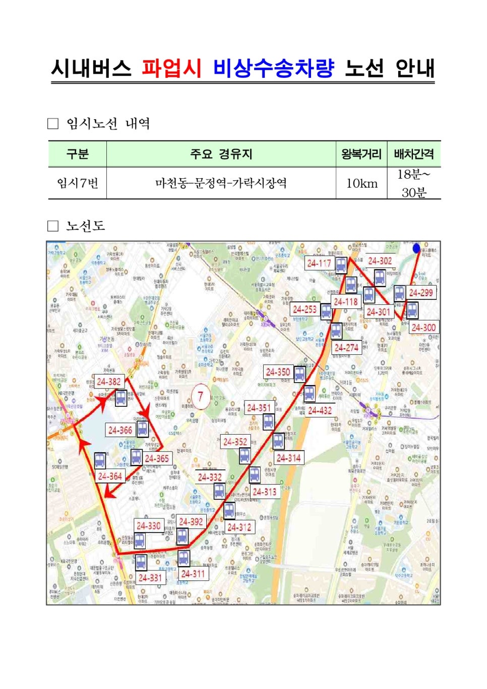 서울 시내버스 파업으로 인한 무료셔틀버스 구별 노선도 안내