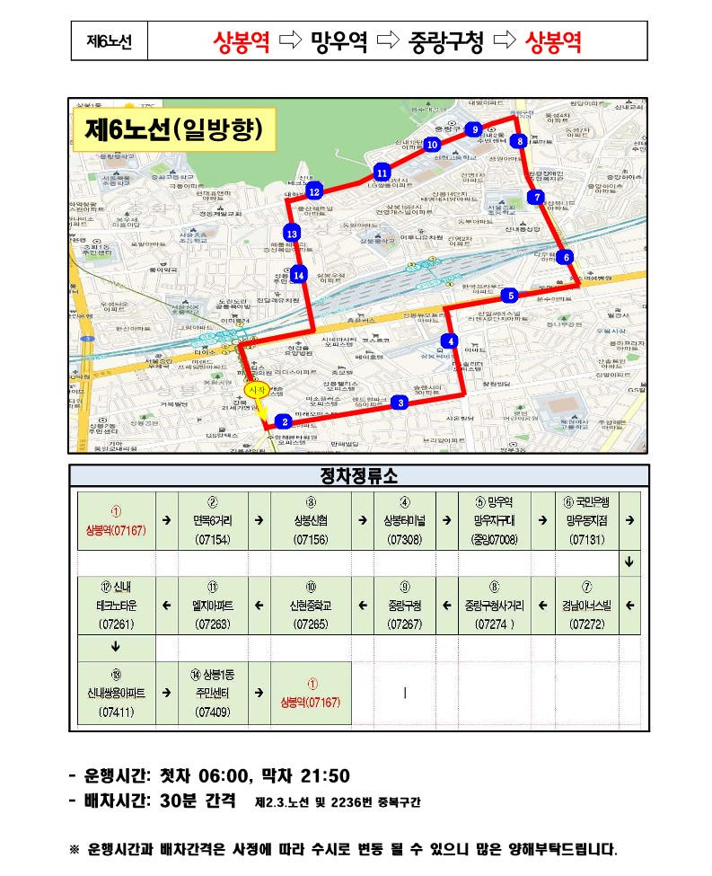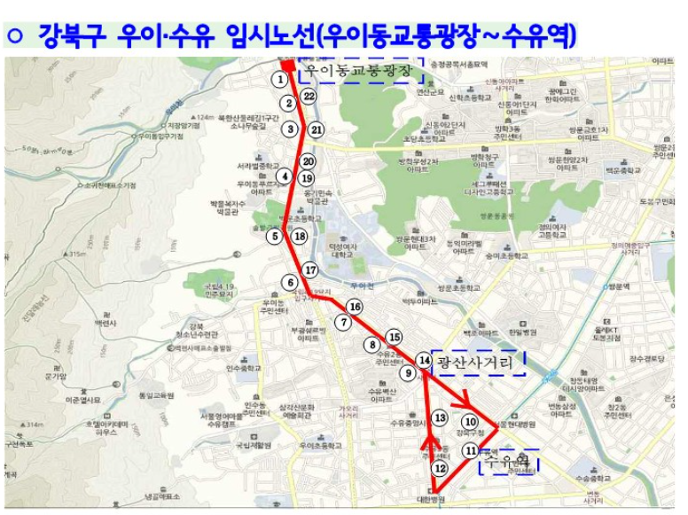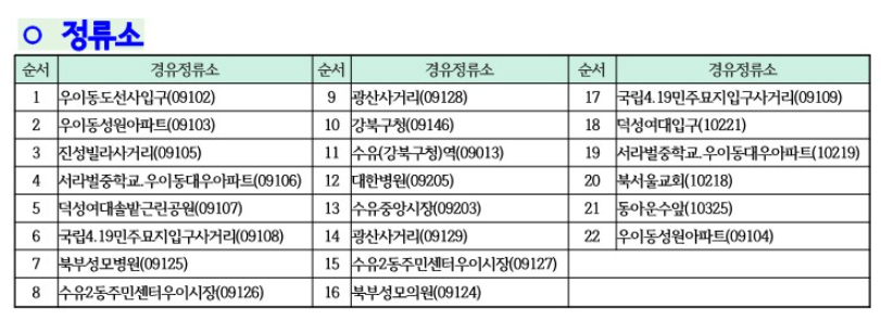 강북구 무료셔틀버스 노선도