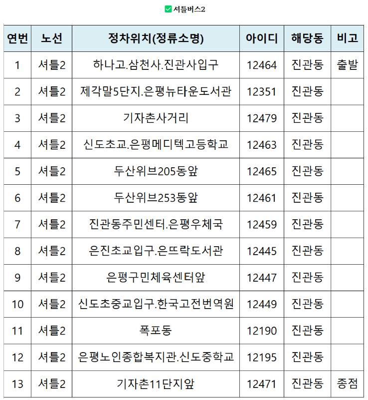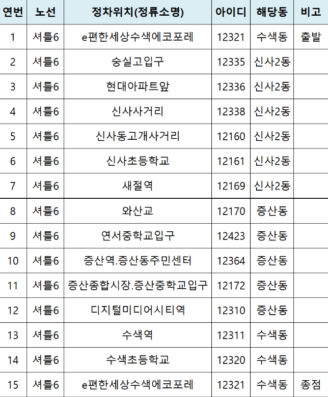 그 밖의 지역 무료셔틀버스 노선도 찾기