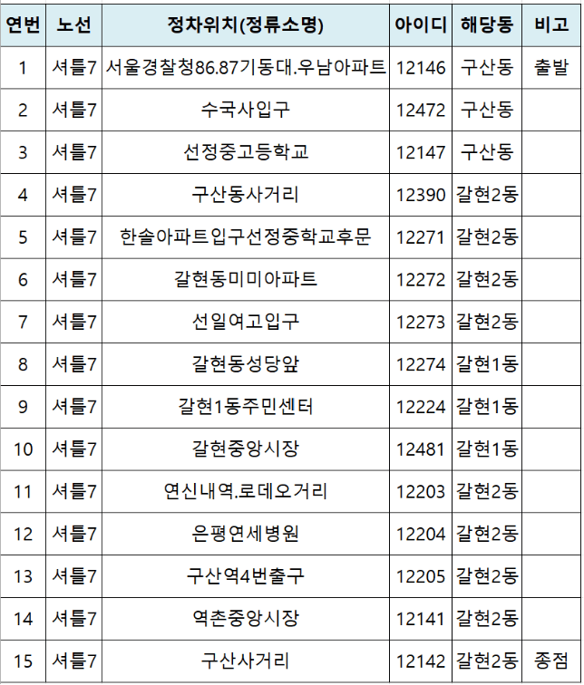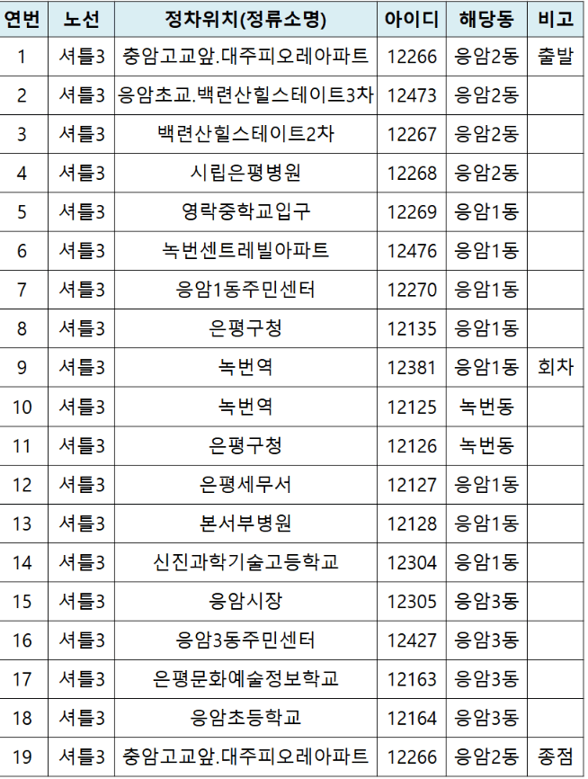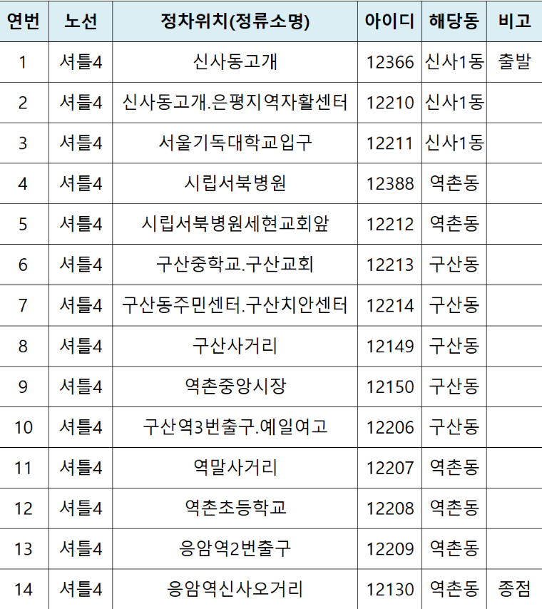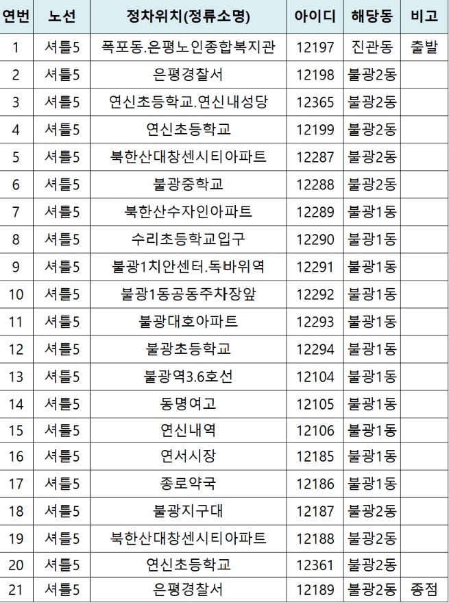 은평구 노선도