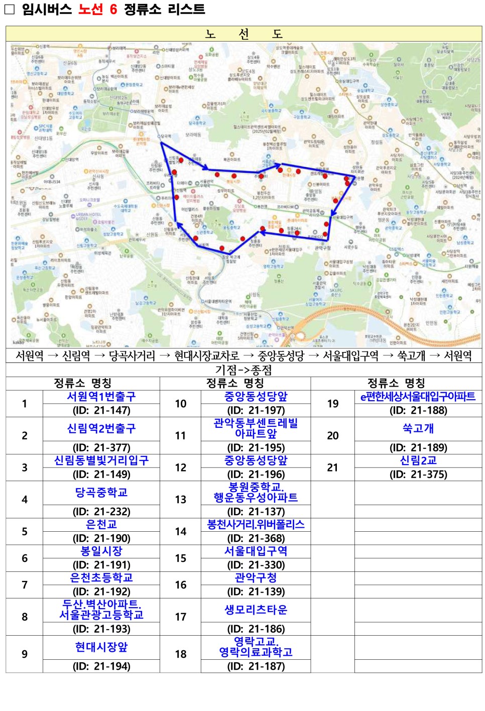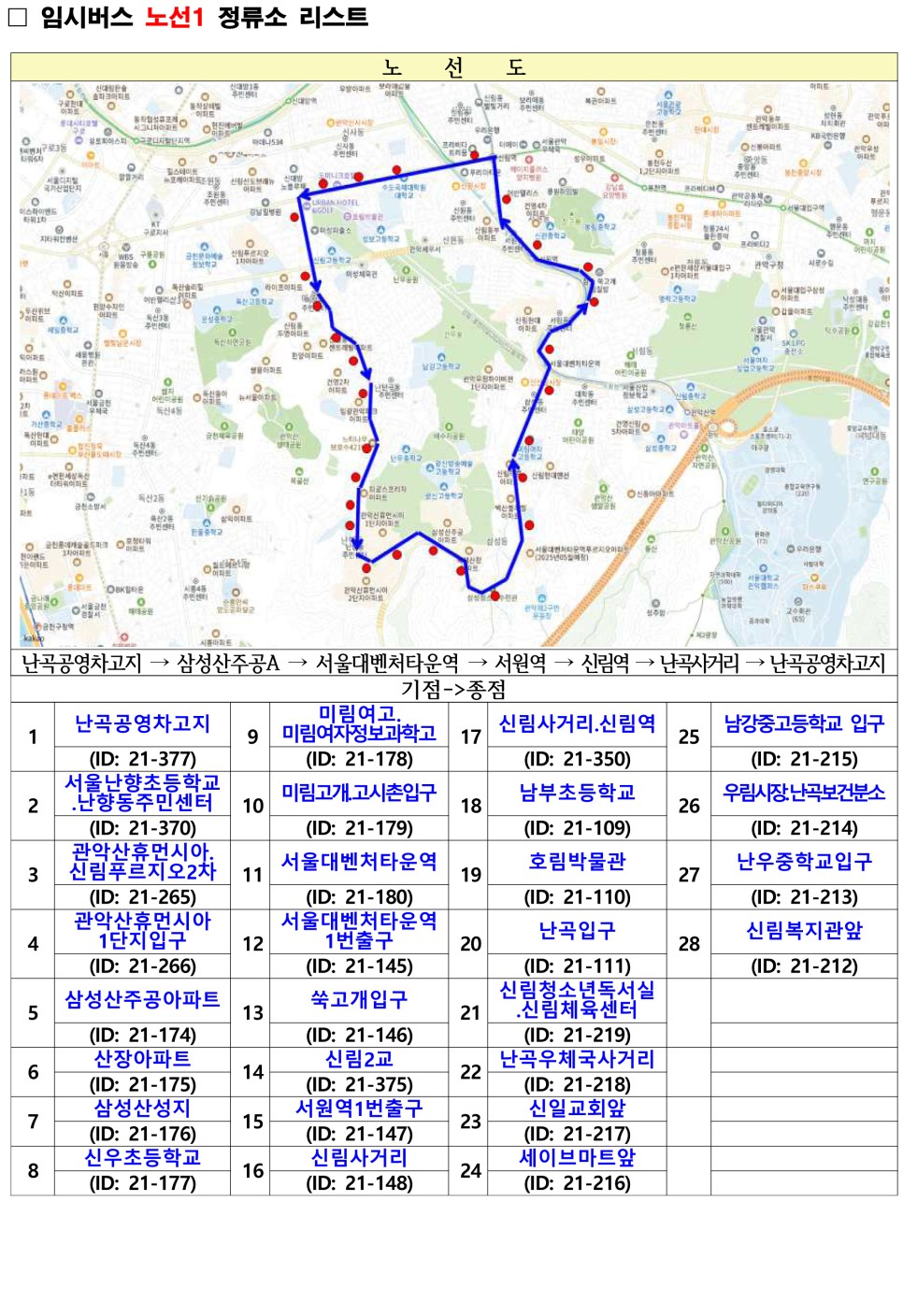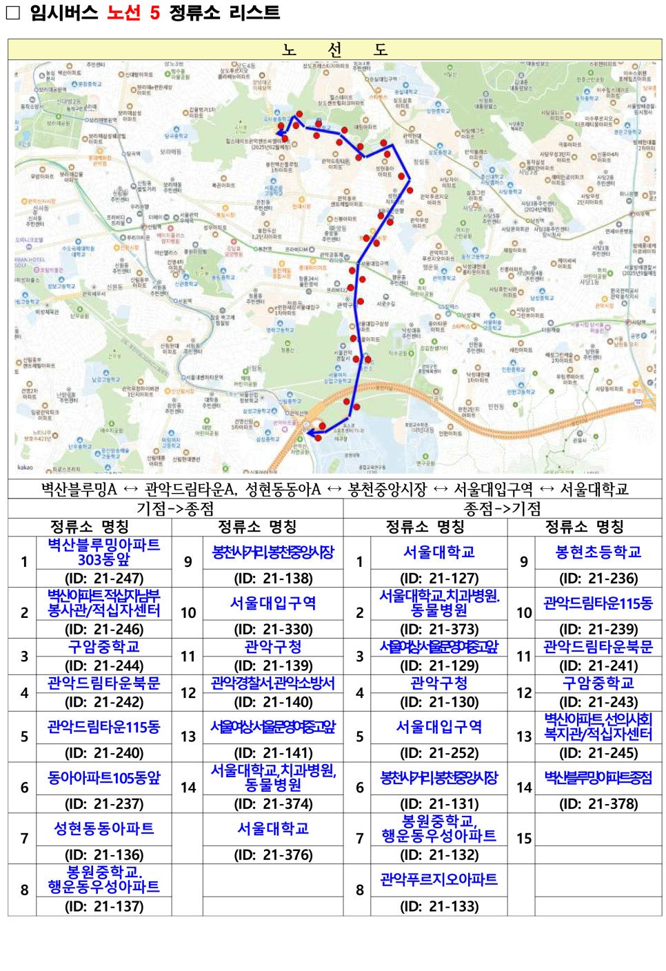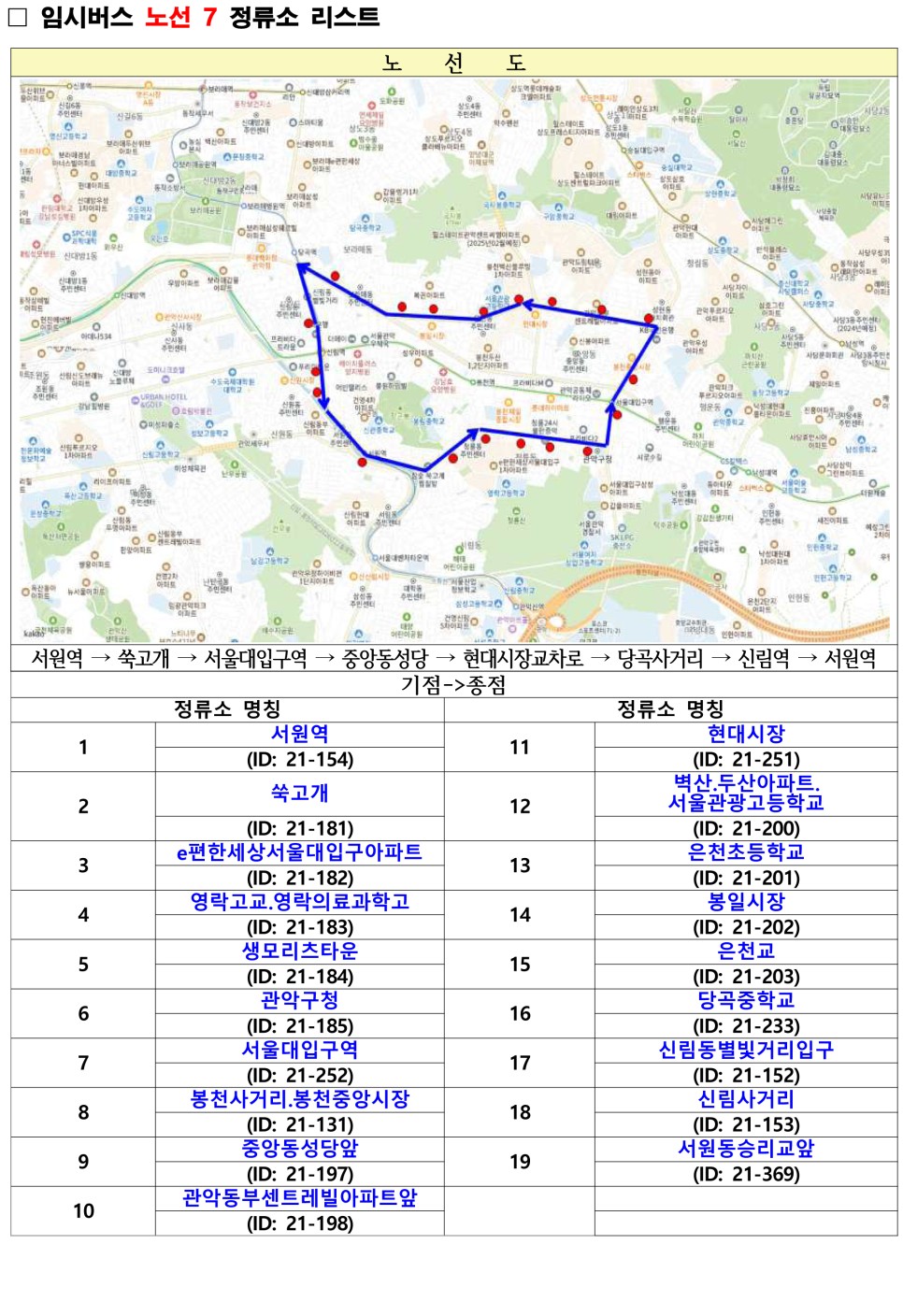 관악구 무료셔틀버스 노선도