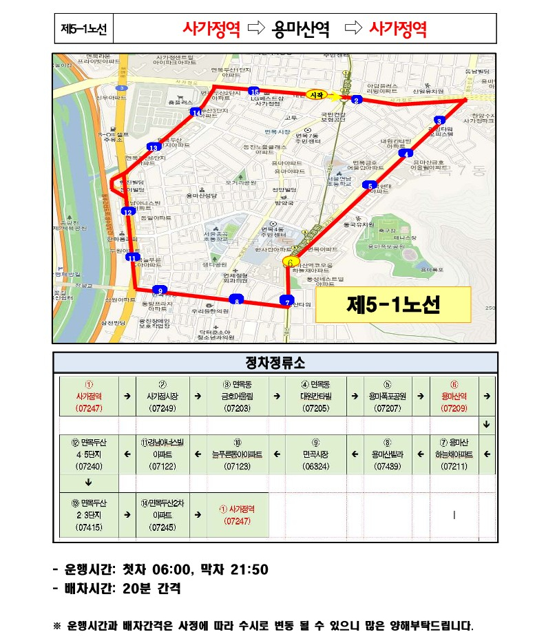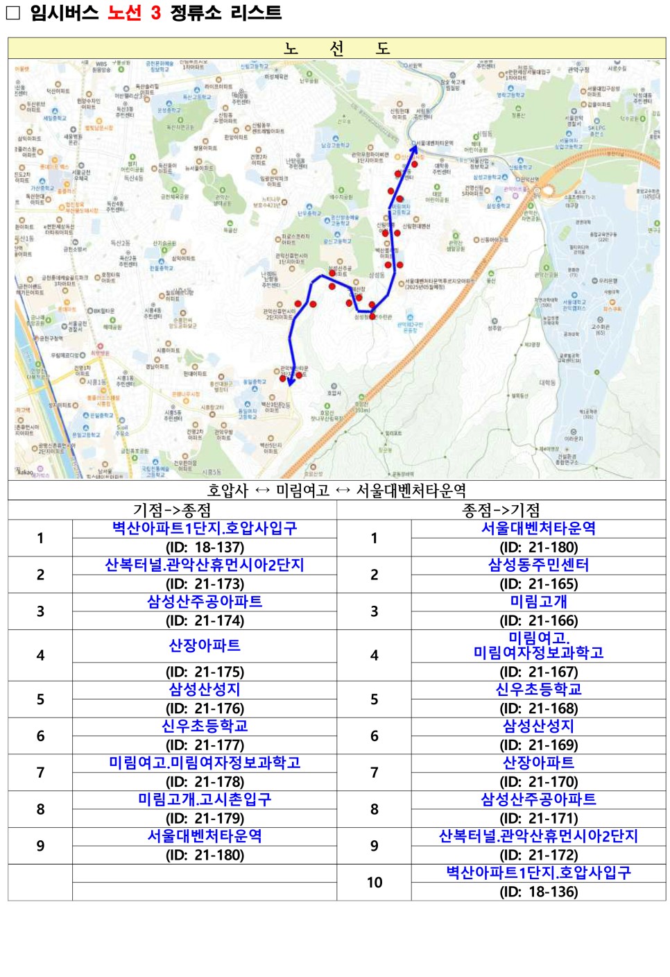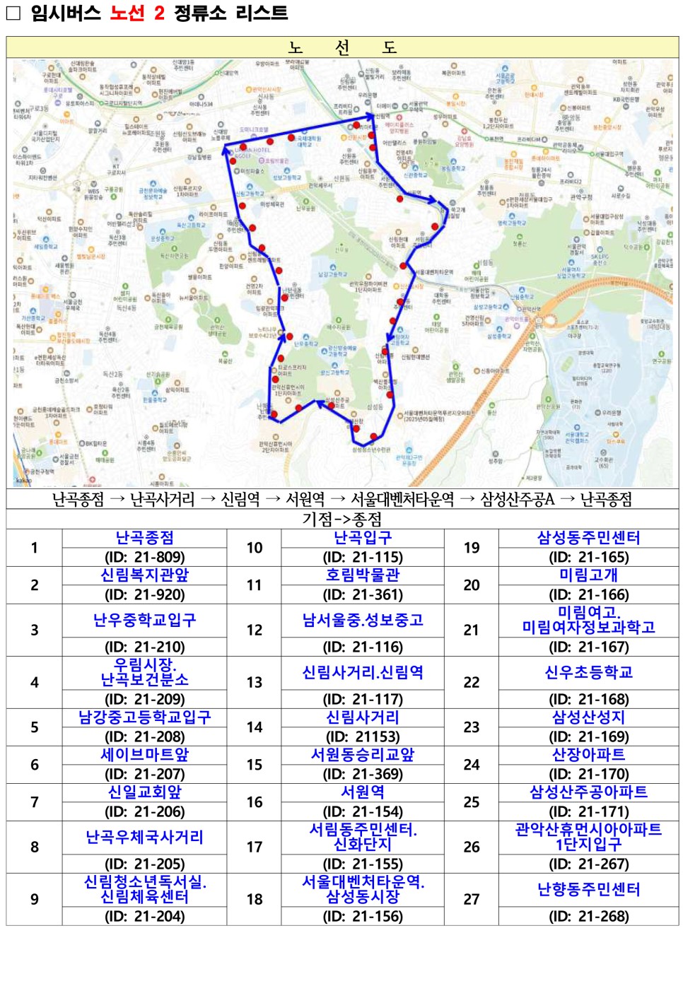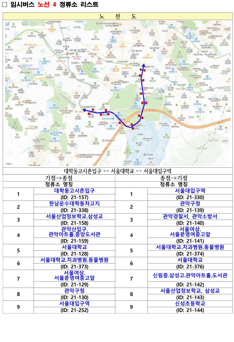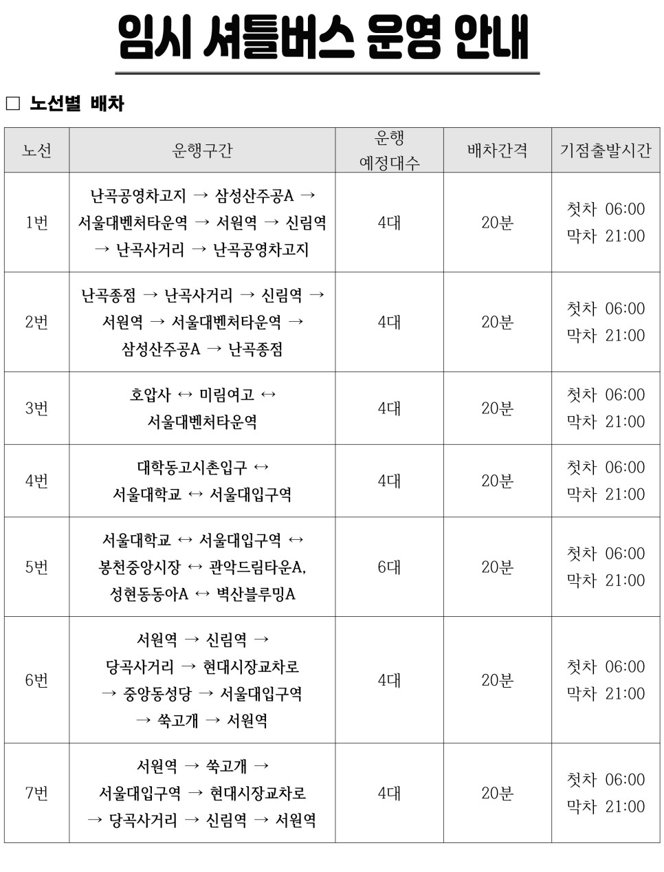 관악구 무료셔틀버스 노선도