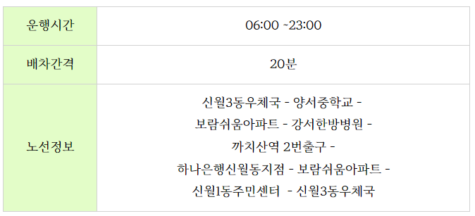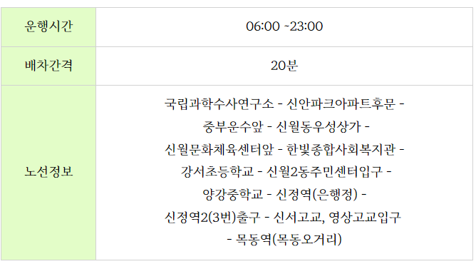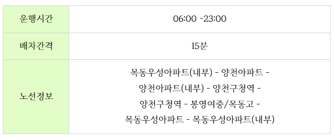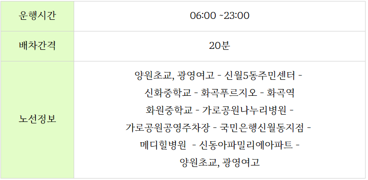 양천구 무료셔틀버스 노선도