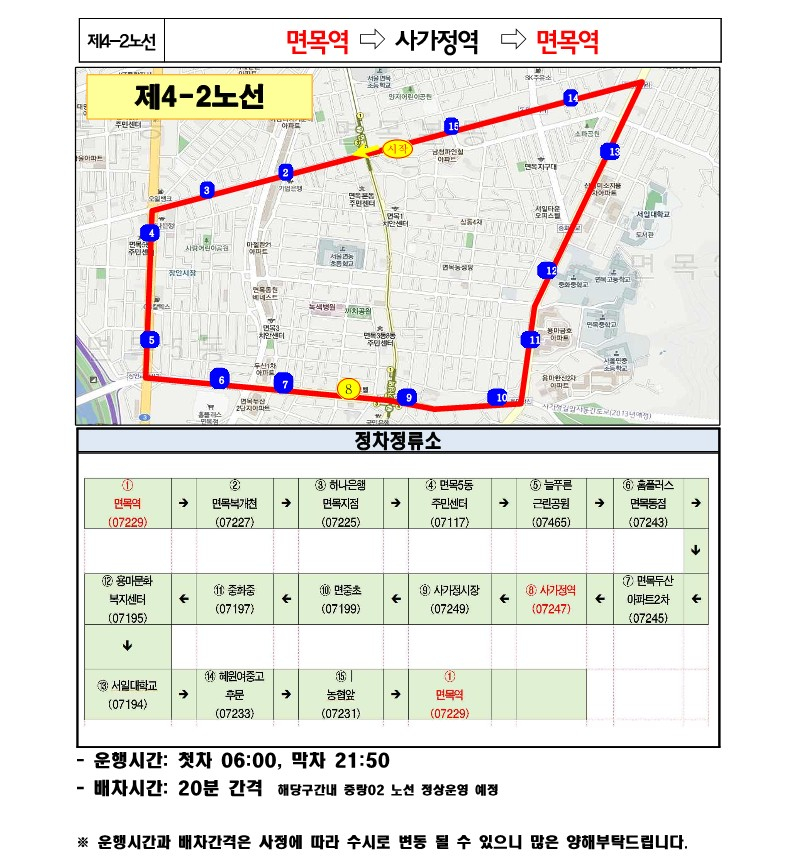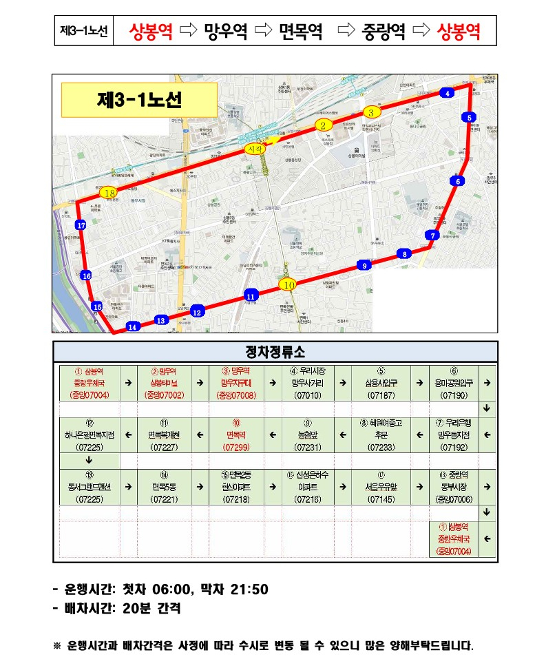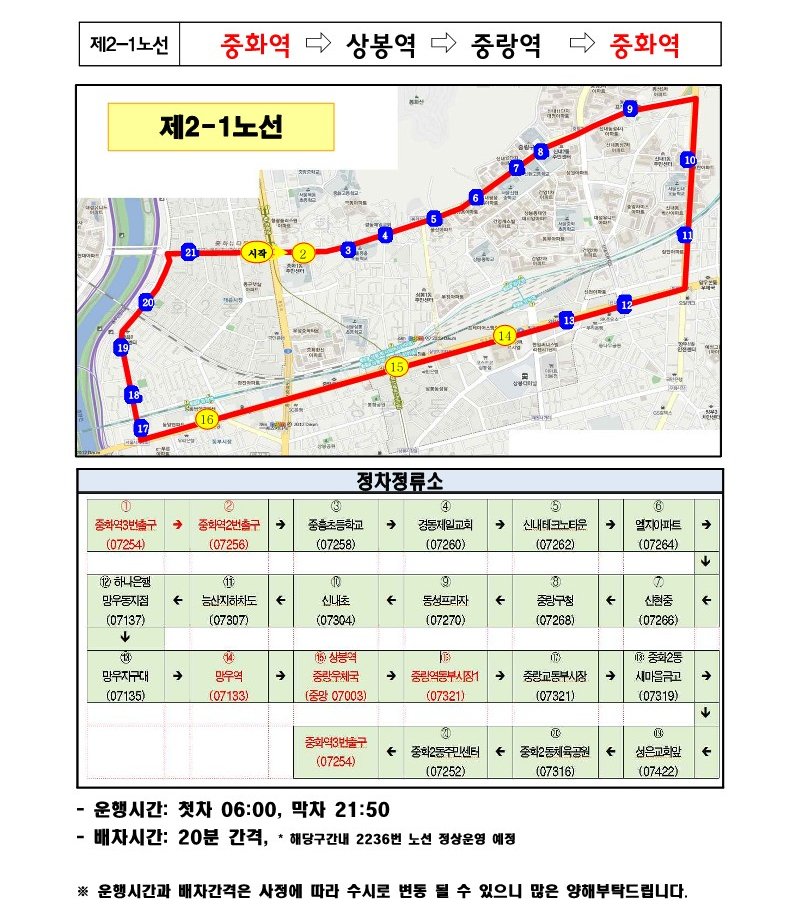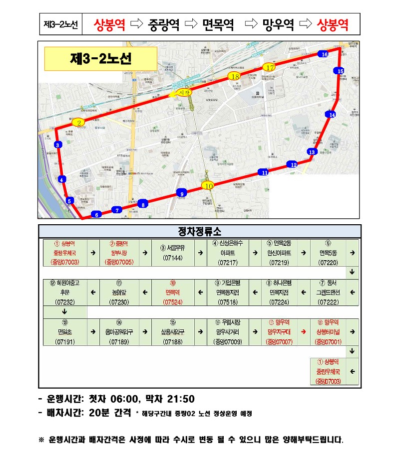 중랑구 노선도