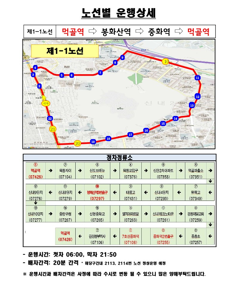 노선 1 (양원초교◀▶화곡역)