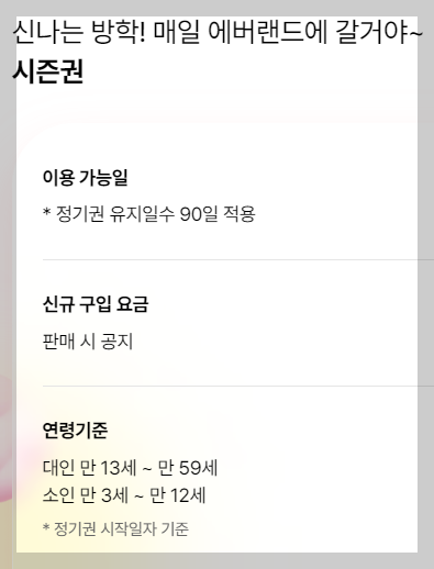그래서 연간회원권(정기권) 종류와 가격에 대해