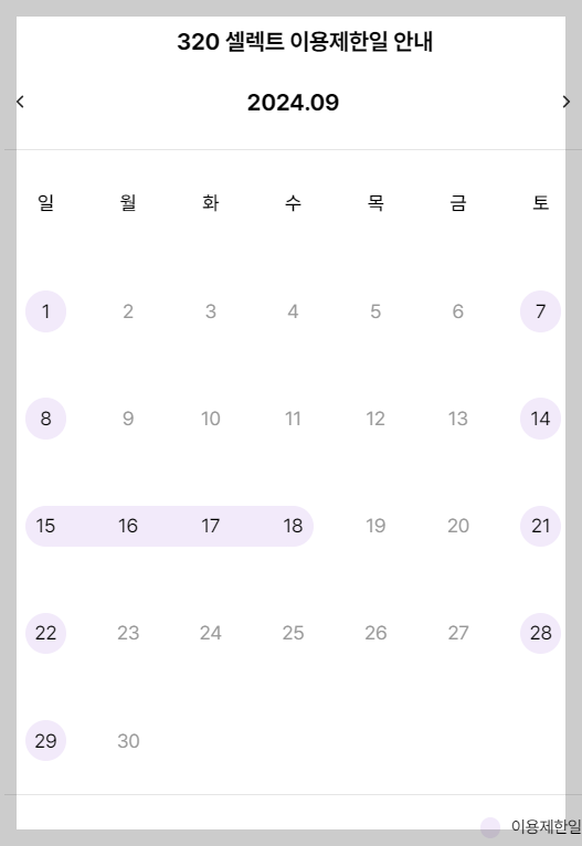 이용제한일 없이 1년 365일 이용가능합니다.
