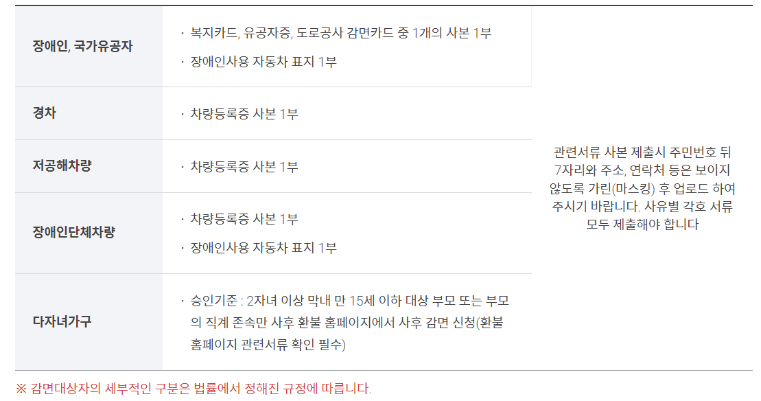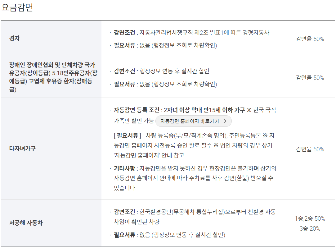 ▶ 경차: 50% 할인, 필요서류 없음