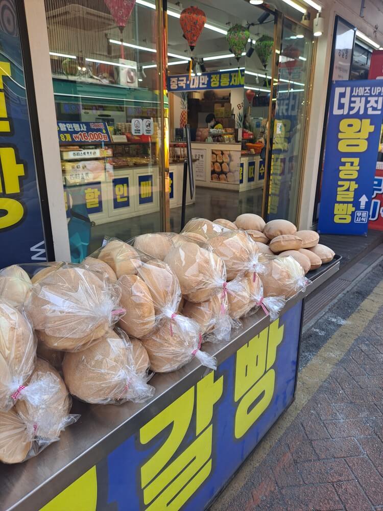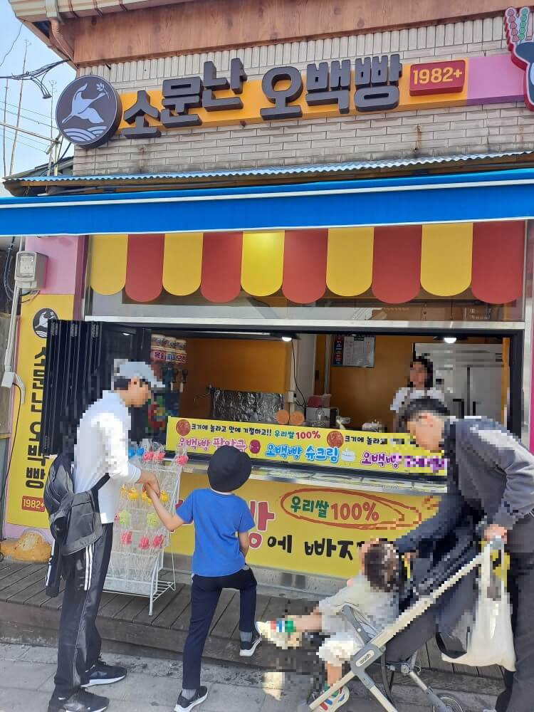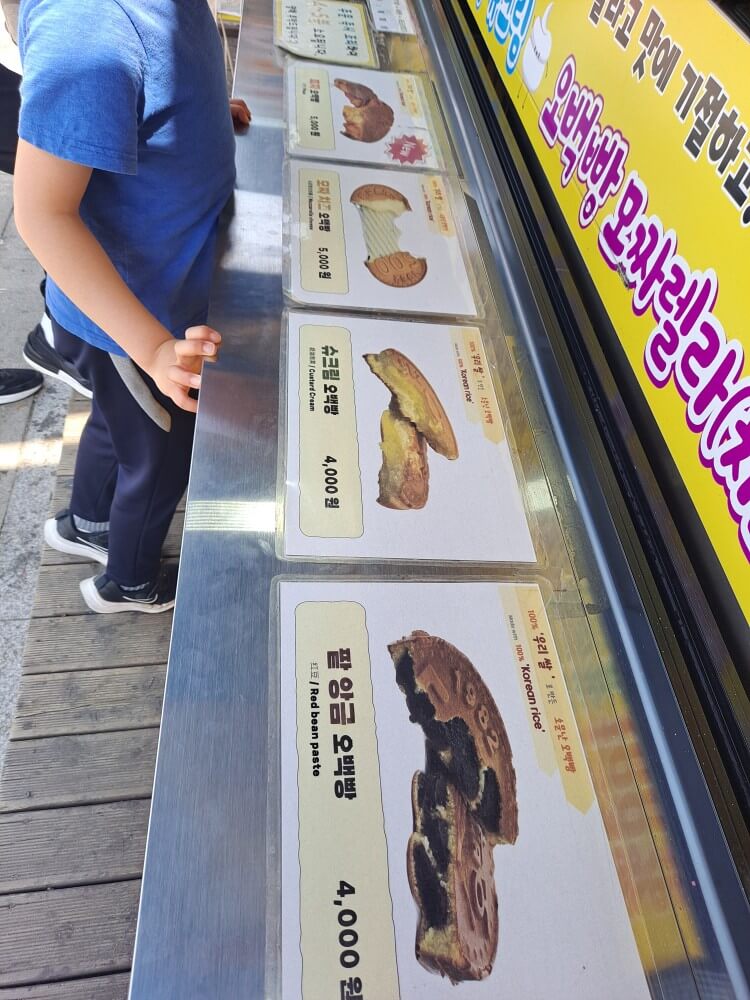 액세서리 소품가게도 보이고 아이가 오백빵 먹어보고 싶대서 하나 사 주었네요.