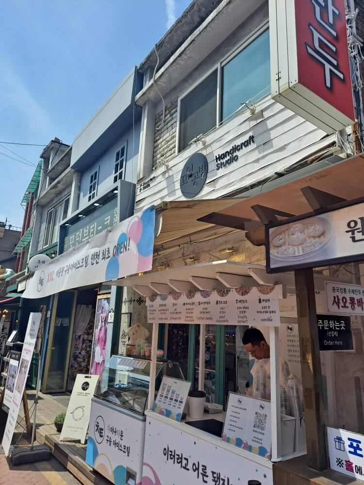 중국집 거리에 구슬아이스크림, 터키아이스크림, 밀크티, 커피숍, 월병, 탕후루, 대만카스테라 다양하게 있었어요.