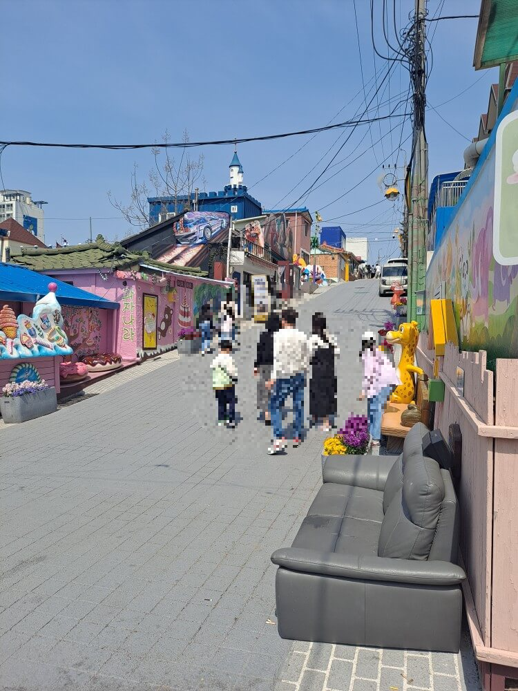 줄 서서 커피 사 마시고 내려오면 이어지는 동화마을.