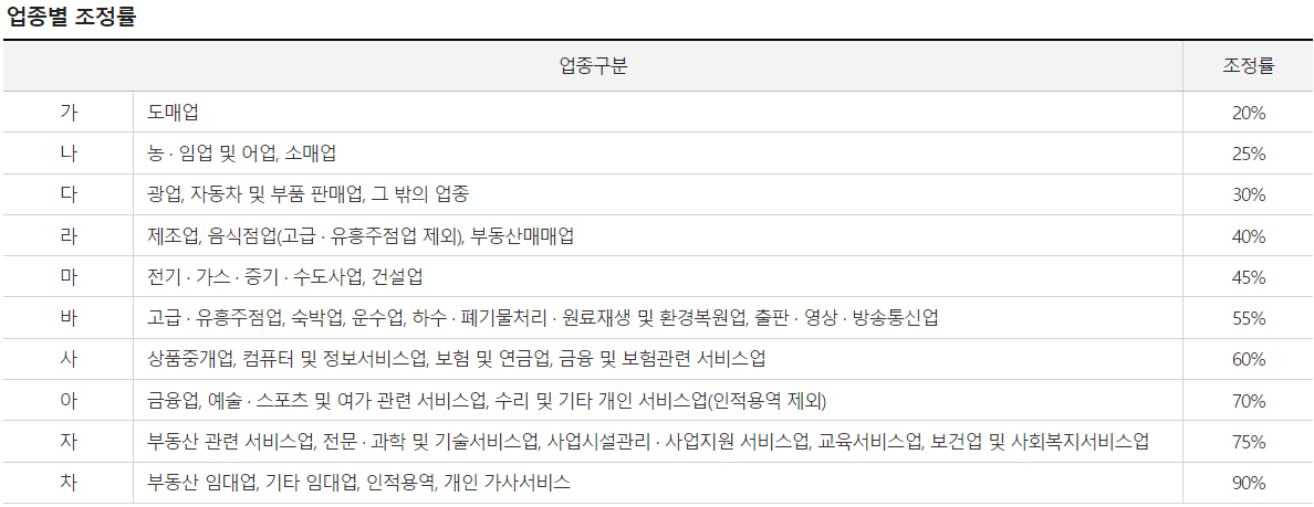 ▶ 사업자 총급여액: 총 매출에서 업종별 조정률 곱한 금액