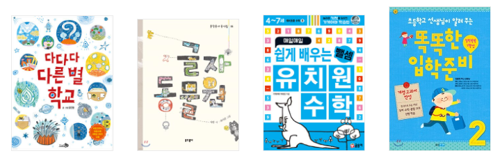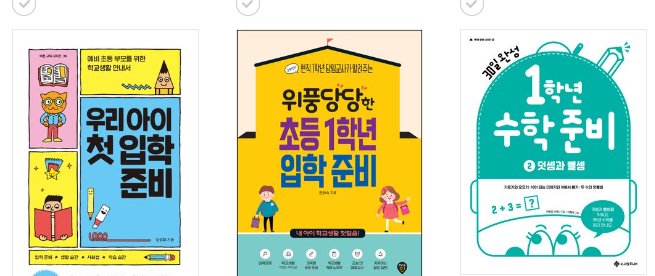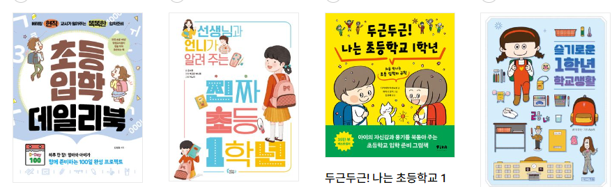 인터넷 서점에서도 얼마든지 쉽게 검색을 해서 구매할 수가 있는데요. 대부분 인터넷 서점 홈페이지에서 ▶ (국내서적>어린이>초등1~2학년>예비초등학생) 카테고리로 찾아 들어가시면 예비 초등학생을 위한 책 리스트가 보일 거예요.