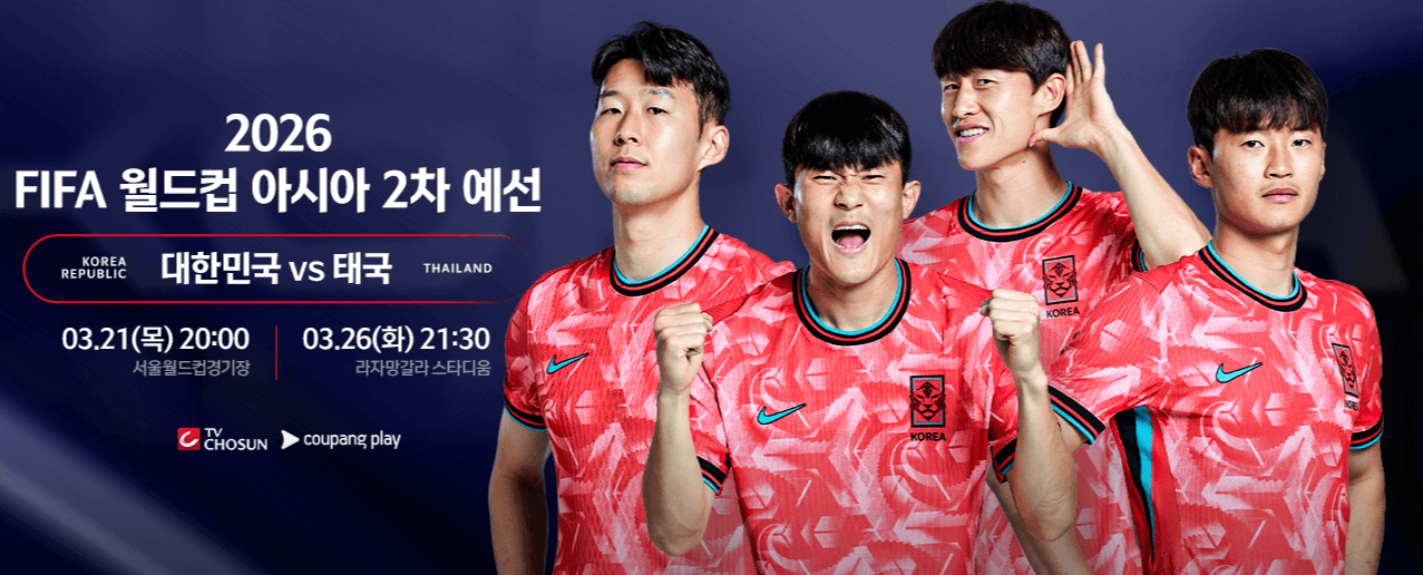 ▶ 2026 FIFA 북중미 월드컵 아시아 2차 예선 세 번째 경기가 상암에서 열립니다. 태국은 동남아시아 축구 강호입니다. 태국은 1차전에서 중국에 1:2로 패배, 싱가포르전에서 3:1로 승리하면서 1승 1패를 기록하여 현재 조 2위입니다. 한국은 현재 C조에서 2승을 하여 1위입니다. 각 조의 2위까지 월드컵 3차 예선 및 2027 AFC 아시안컵 본선에 진출할 수 있습니다.