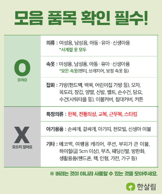 ※ 버리지 않는 사용할 수 있는 옷만 가능합니다.