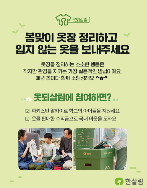매년 봄이면 한살림에서는 안 입는 옷들을 모으는 행사를 합니다.