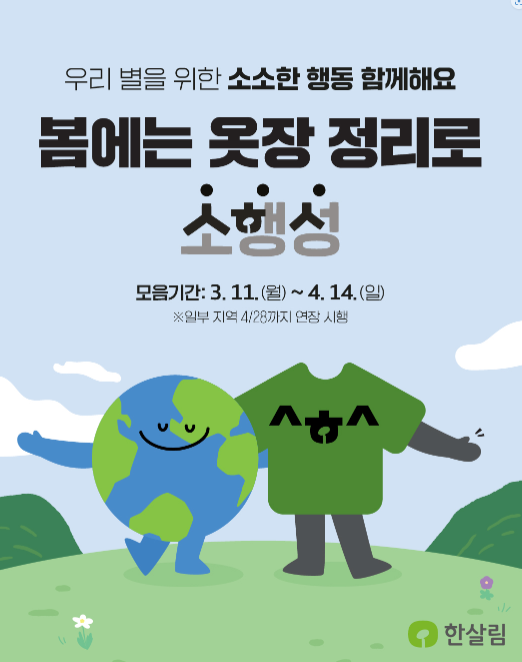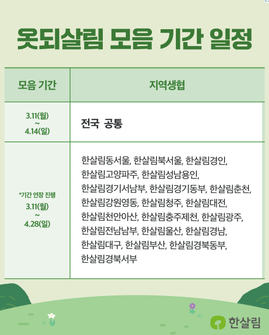 옷되살림 모음 기간은 3.11(월)~4.14(일)까지 전국 공통입니다.