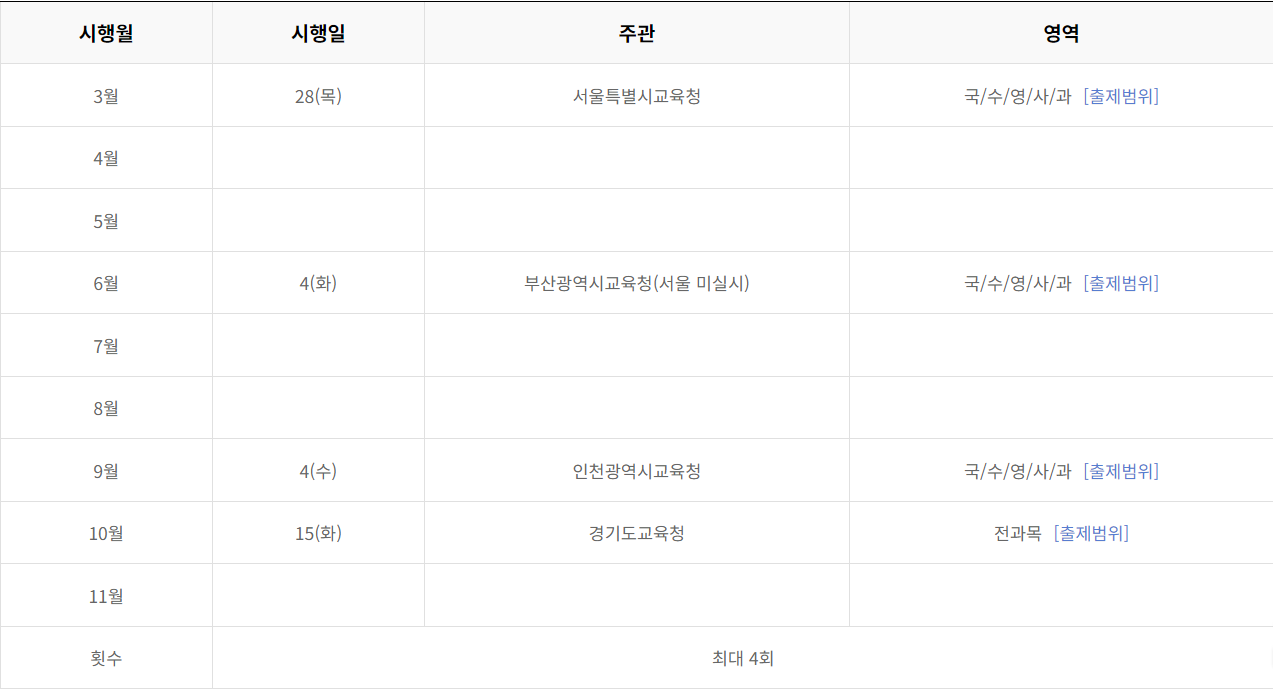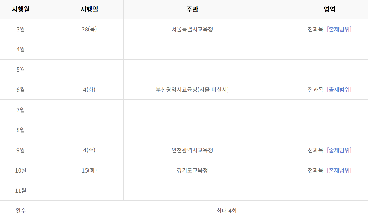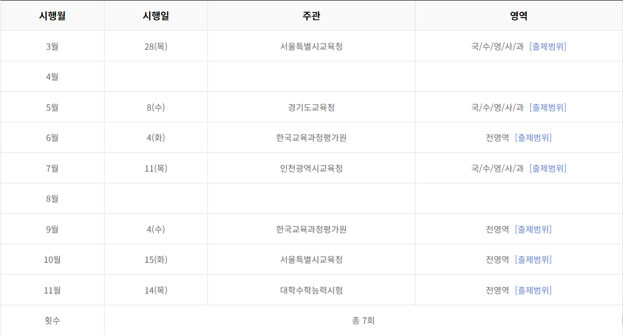 2024 모의고사 일정과 출제범위을 알려드리겠습니다.