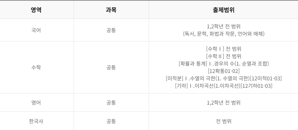 고3 - 6모 출제범위