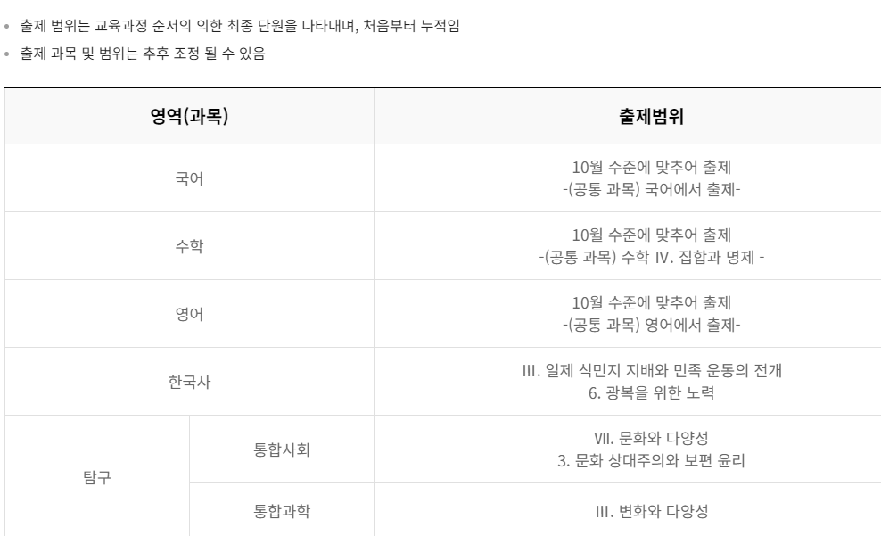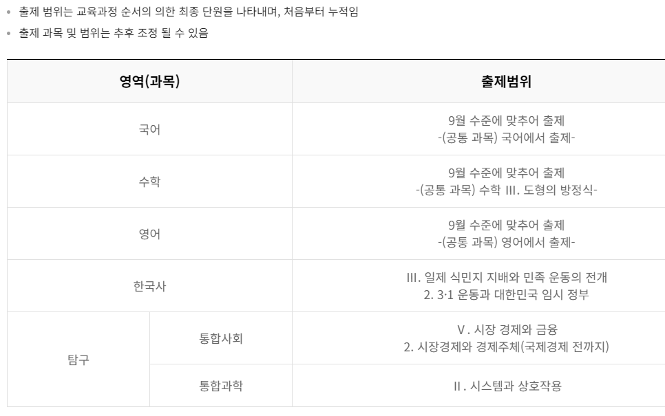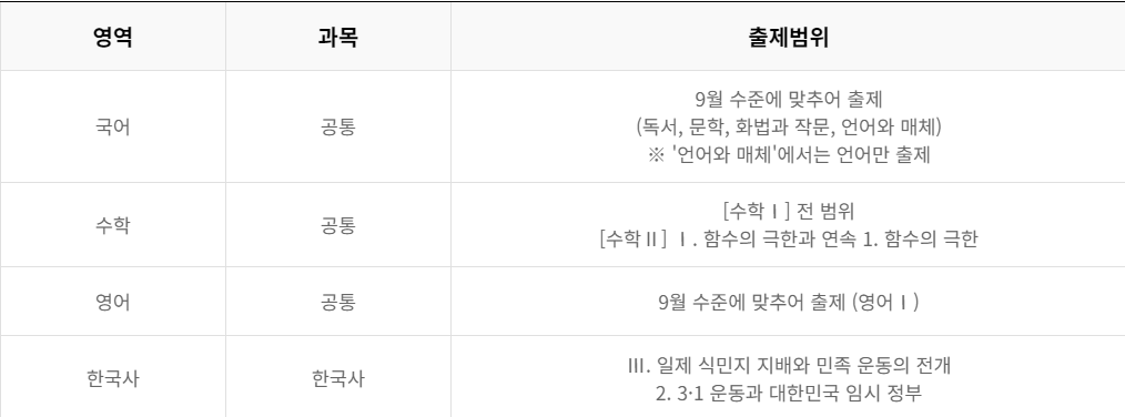 고3, 9월~10월 모의고사 출제범위: 전 영역