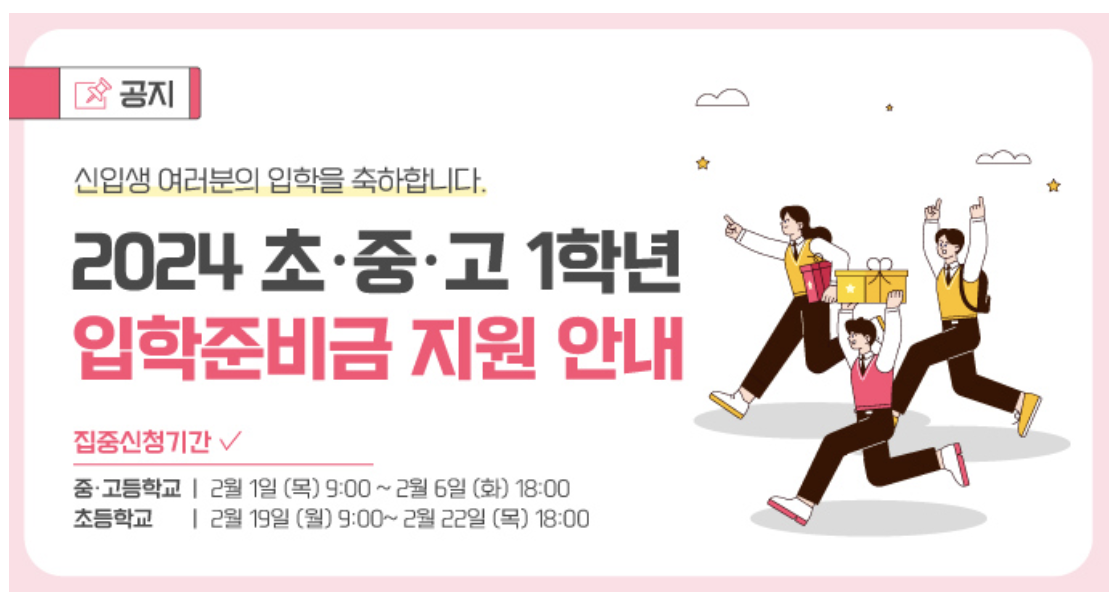 2024년도 초중고 1학년 신입생 입학준비금 지원 안내