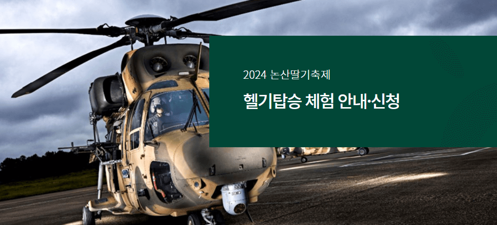 ▶ 논산은 비옥한 토양과 맑은 물, 풍부한 일조량, 최고의 재배기술로 50여년간의 재배역사와 전국 최대 딸기 생산량을 자랑합니다. 3월 21일부터 24일까지 '논산딸기와 사랑에 빠지다'란 주제로 논산 공설운동장, 논산시민 가족공원에서 축제가 개최된다고 하는데요. 올해는 육군항공학교와 논산시가 함께 축제를 준비했다고 합니다. 수리온 헬기 8대와 각종 첨단 군 장비들이 전시되며 신청을 받아 수백 명이 직접 헬기를 타고 논산 시내와 탑정 저수지를 관광하는 특별한 체험도 즐길 수 있습니다. 그 밖에 딸기 수확 체험, 딸기 디저트 카페, 딸기 과학 체험존, 논산딸기굿즈마켓, 먹거리 부스 등 풍부한 콘텐츠가 준비되어 있다고 하니 딸기도 맛보고 논산 11경도 관광하는 알찬 여행을 계획해 보시는 것도 좋을 것 같습니다. 이번 축제 일정과 프로그램을 살펴보니 정말 작정하고 기획했다는 것이 느껴집니다. 소소한 축제가 아닌 규모있는 알찬 축제인 것 같습니다.